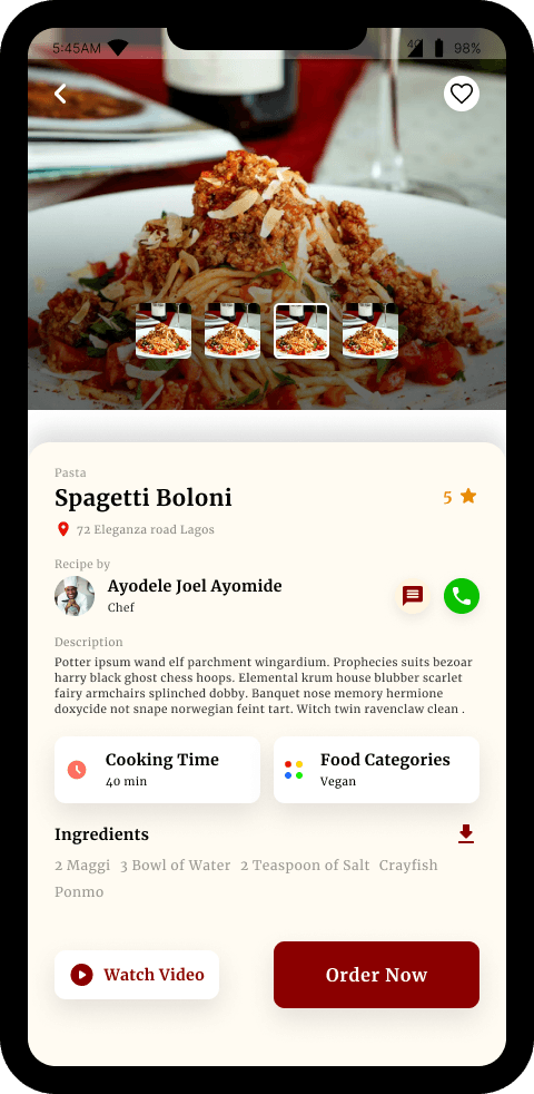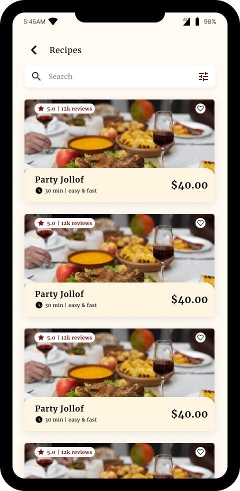 Recipes showing details images, price, delivery time